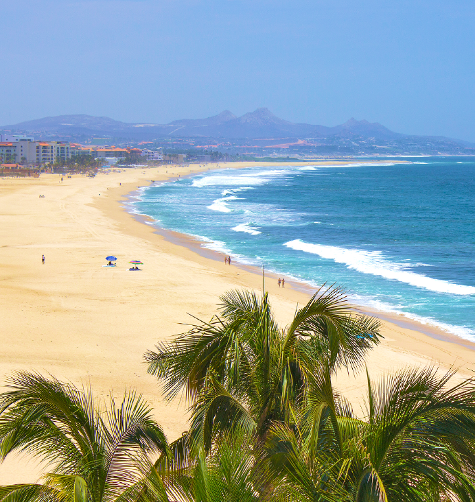 Vivir en Los Cabos es disfrutar de playas únicas, desde las tranquilas aguas de Palmilla y Puerto Los Cabos, hasta largas caminatas por la bahía de San José. Explora los 90 km de costas vírgenes de Cabo del Este, donde la arena suave y el mar turquesa te invitan a descubrir su vida marina.