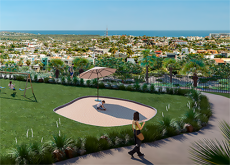 Pequeñas alegrías, imaginación sin límites. El arenero es un espacio encantador donde las manitas pueden cavar, construir y crear sus propias aventuras. Diseñado para un juego sensorial y seguro, fomenta la creatividad y la interacción social—convirtiéndose en el rincón favorito de los residentes más pequeños para explorar, aprender y divertirse bajo el sol.